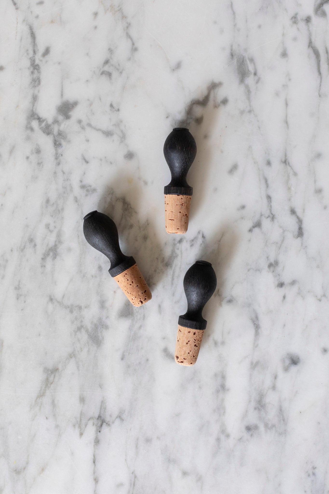 The classic stopper is made from natural cork and FSC oak and the ebonized version is made from a solid oak handle with a natural cork seal. The process of naturally blackening these stoppers goes below the surface to reveal the wood grain making each one unique. Finished with a linseed oil luster.