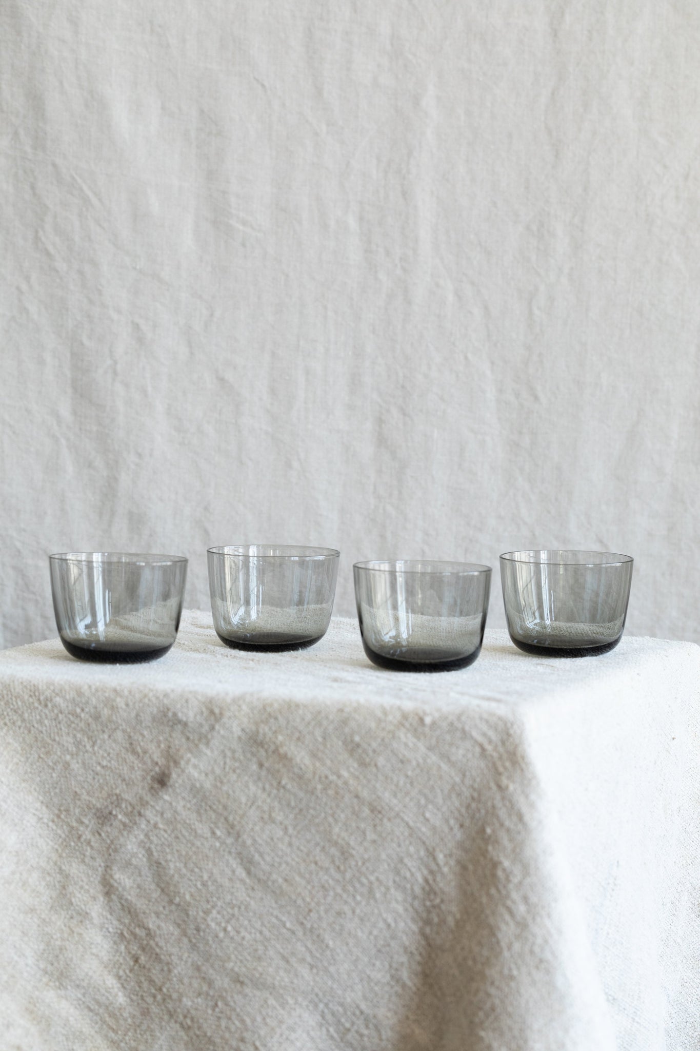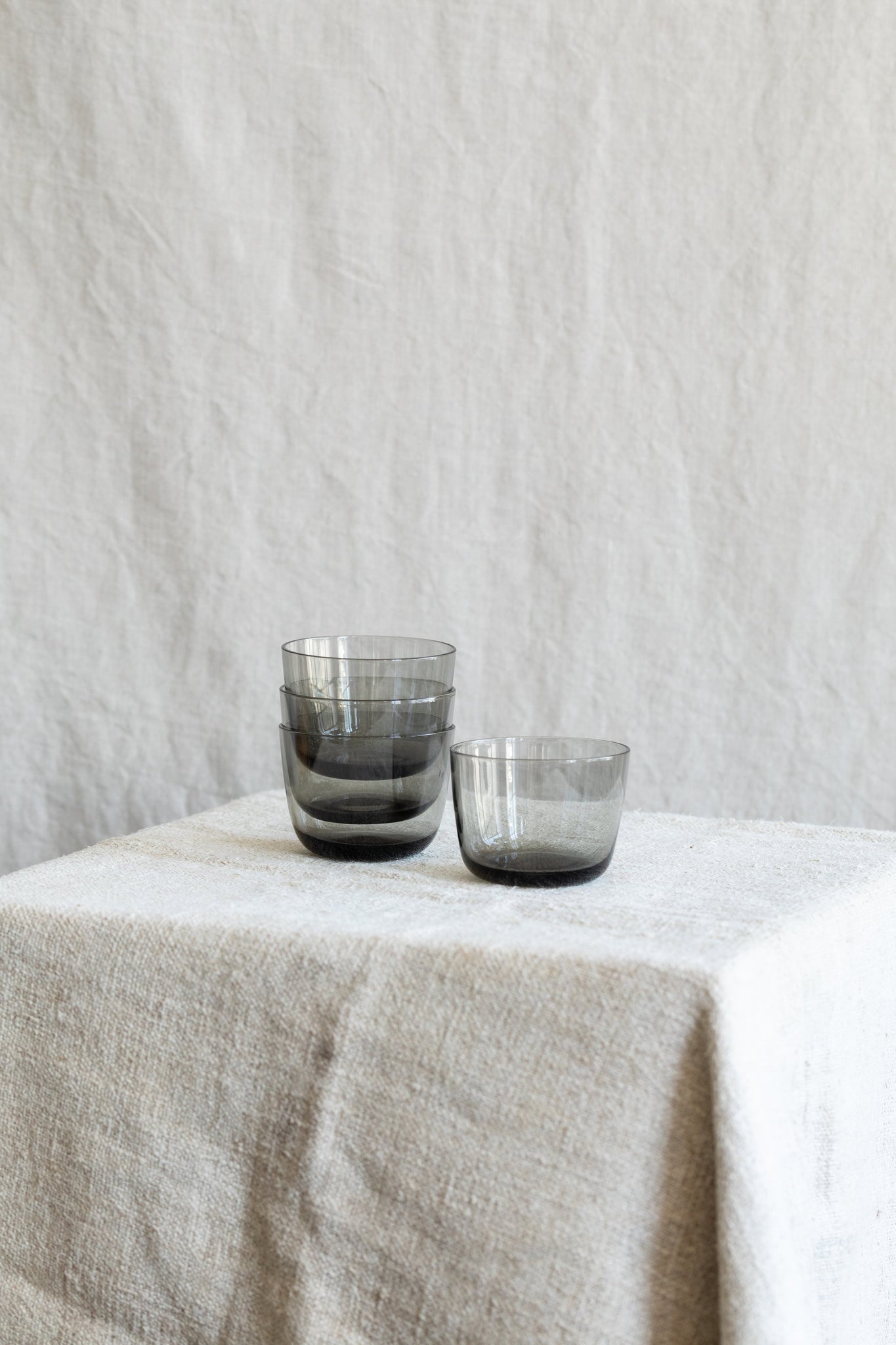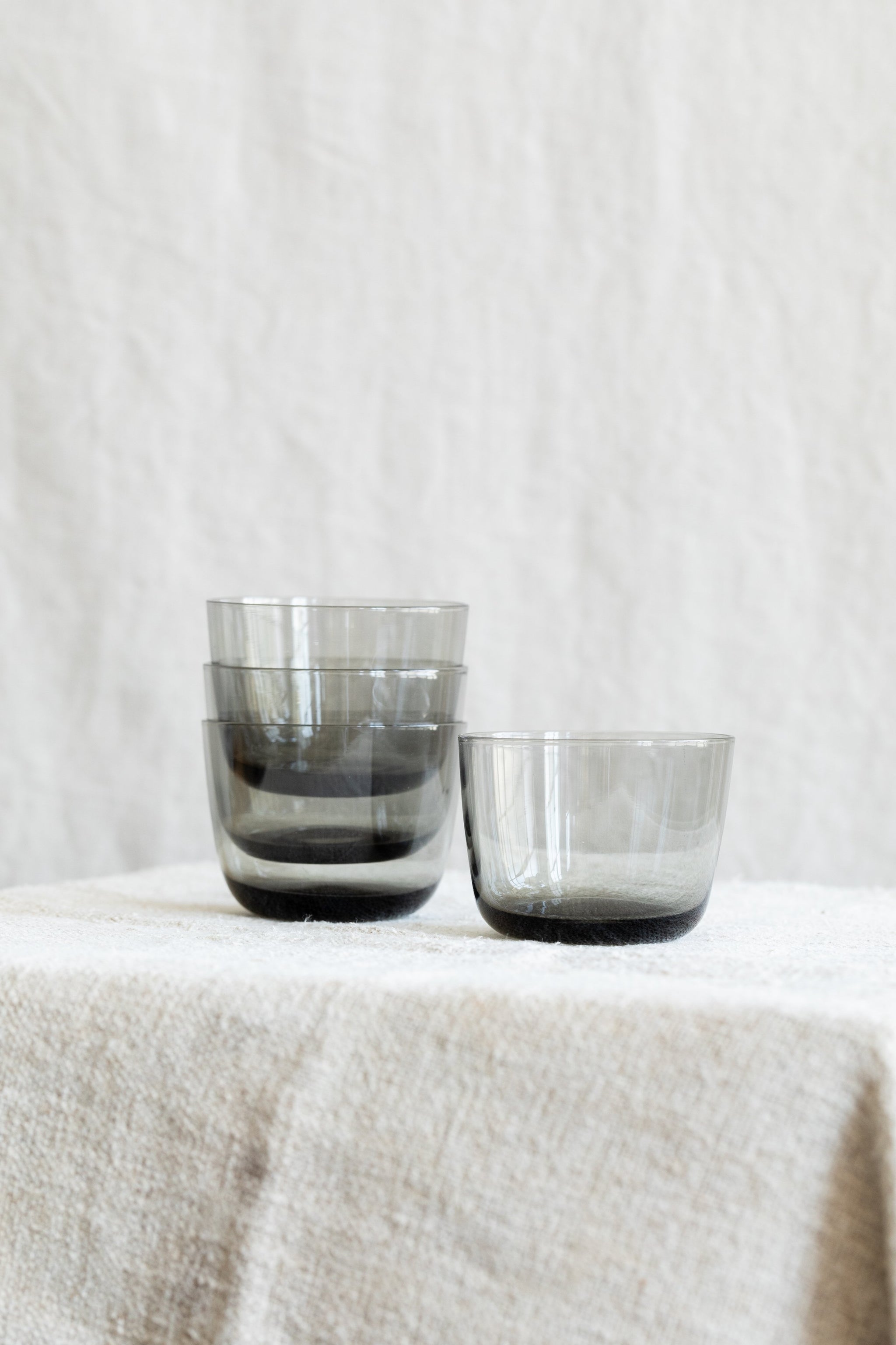 This timeless carafe has a semi-transparent finish in an elegant ash gray hue. The simple straightforward design accentuates the carafe’s timeless appeal. The low glasses combines straightforward design with timeless appeal. Both part of the Cena collection, which encourages users to see the beauty in their daily routines.
