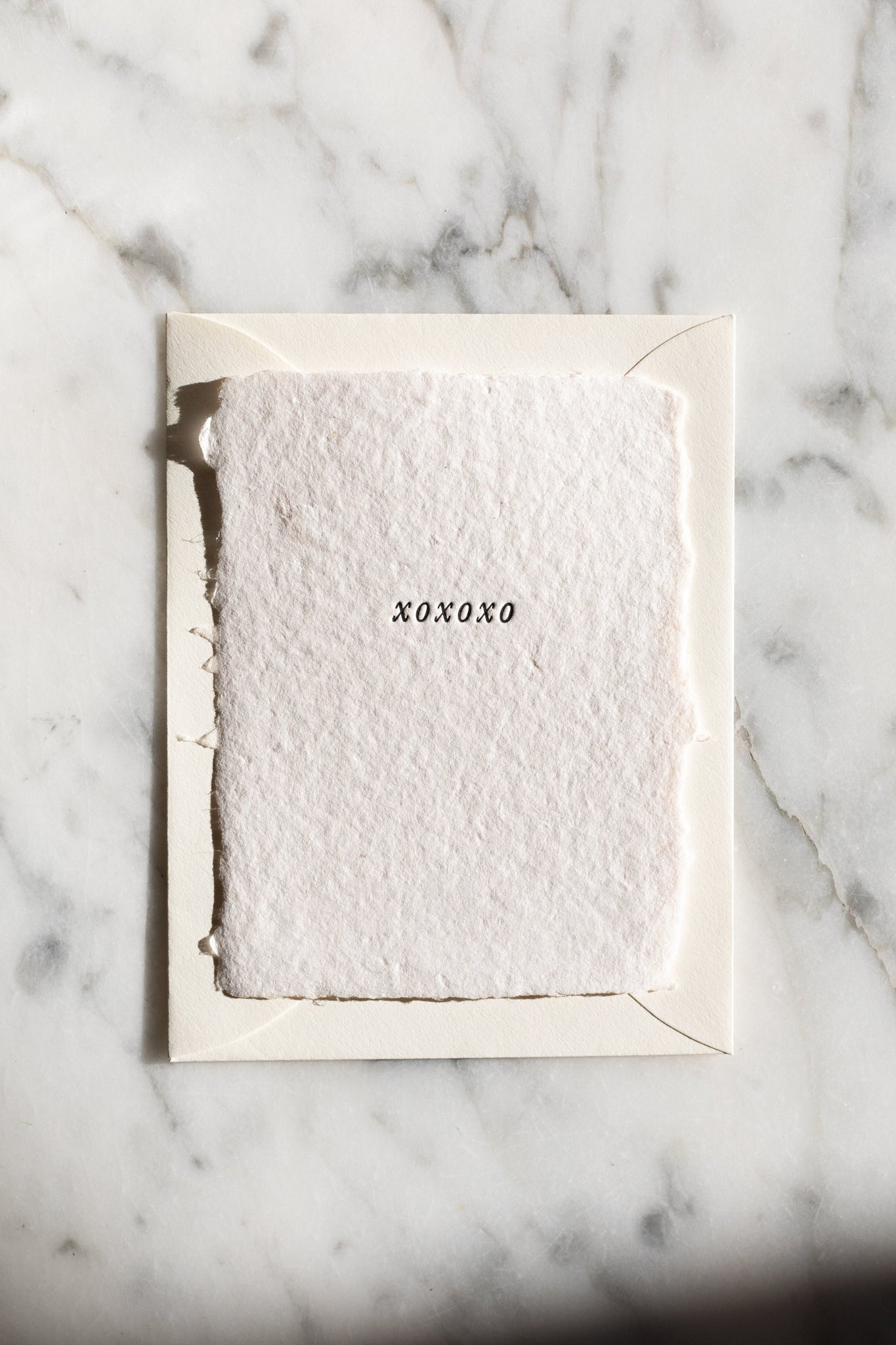 "xoxoxo" -letterpressed in black ink on blush handmade paper