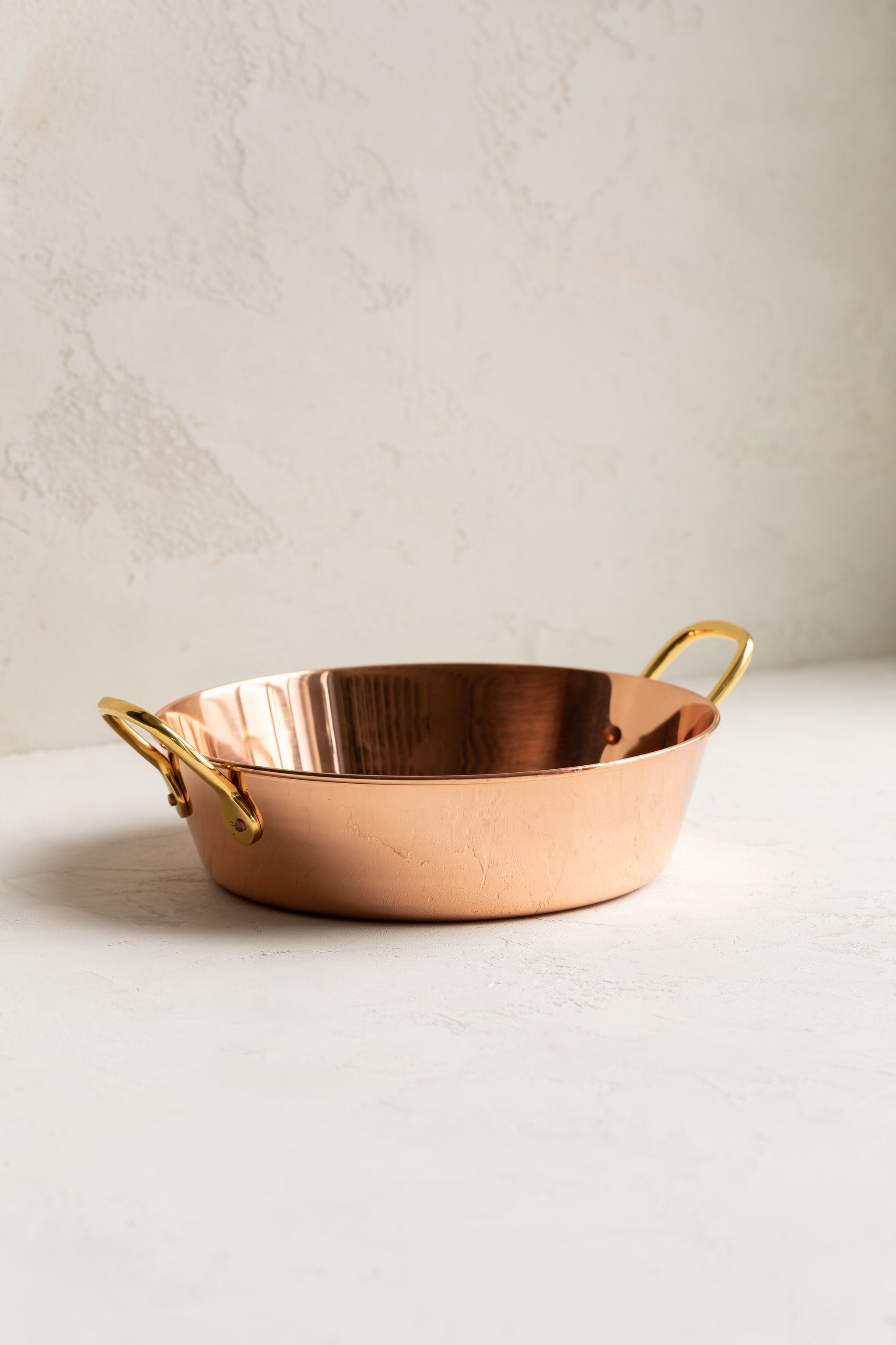 The Copper Fait Tout or the "do everything tub,” and an essential part of your kitchen. Whether it's storing drinks for your next party, cooking your next large meal, or simply displaying on your shelf, Galley and Fen’s handmade English Tub is truly a piece meant to last a lifetime. Made entirely out of copper with two brass handles. If it doesn't belong in a cottage kitchen, it doesn't belong in your kitchen.
