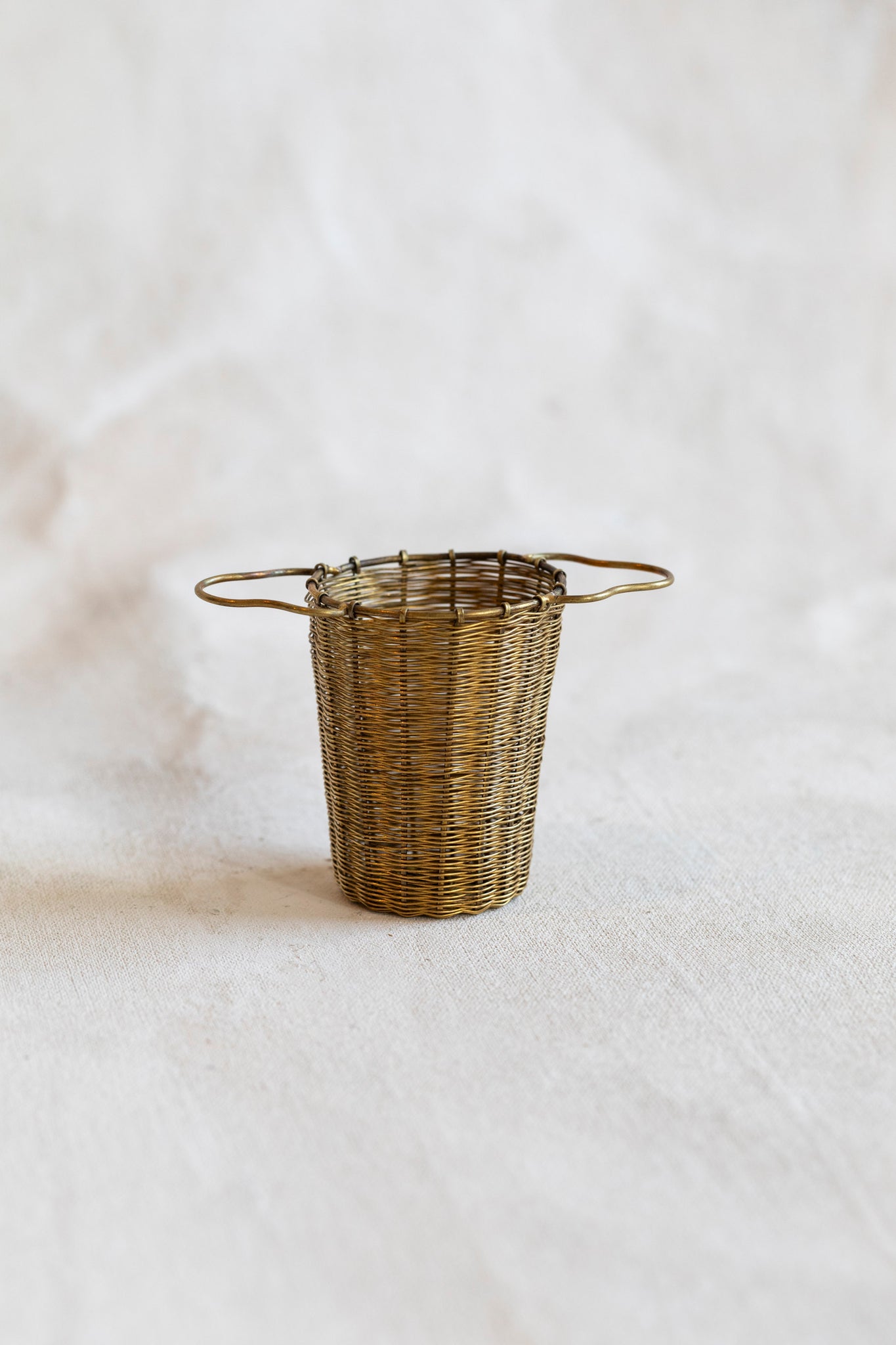 Bellocq metal artisans, for the more intimate brew, have designed this versatile, hand-crafted brass tea strainer, an in-house favorite. Simple and elegant, this strainer will quickly become your best friend. The Petite Basket Brass Strainer is built to perch on the edge of your mug and designed to strain leaves from a larger pot into your cup.