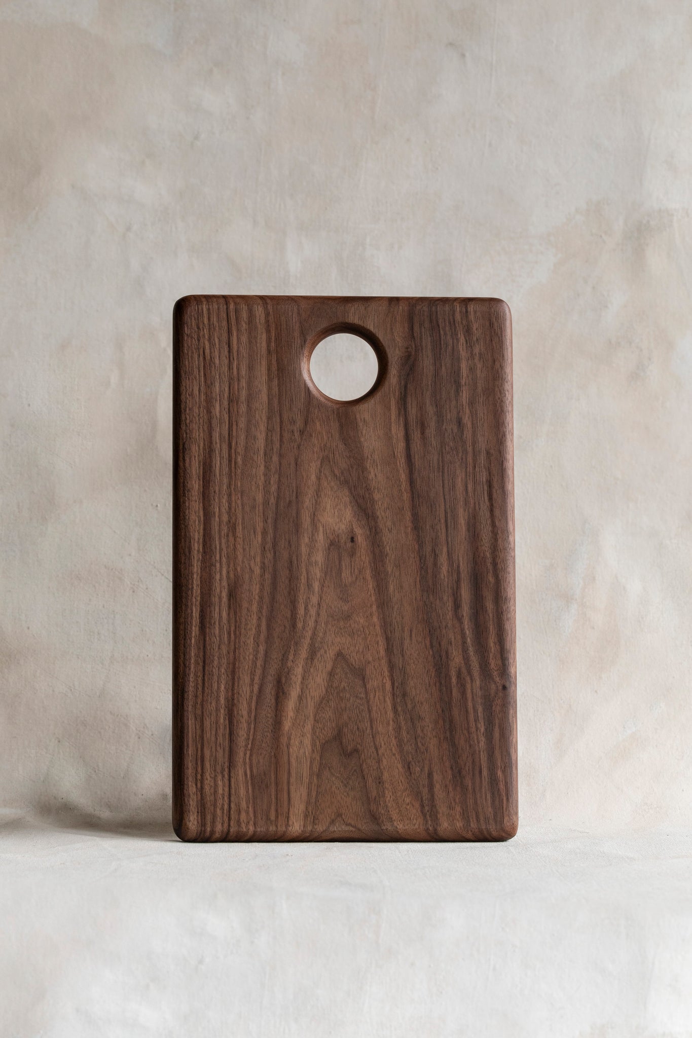 Made in California, this Walnut Cutting & Serving Board combines natural beauty with practical design. Designed with a rounded opening that serves as a handle or bowl rest when used as a serving board. Perfect for everyday use or special gatherings, it brings warmth and functionality to your kitchen.