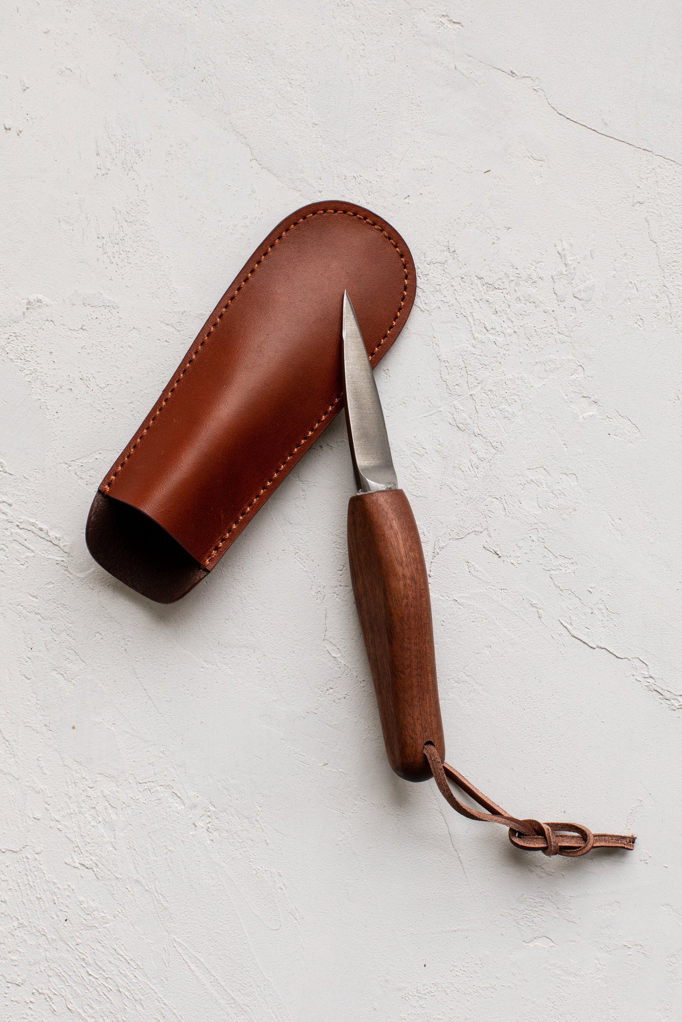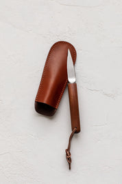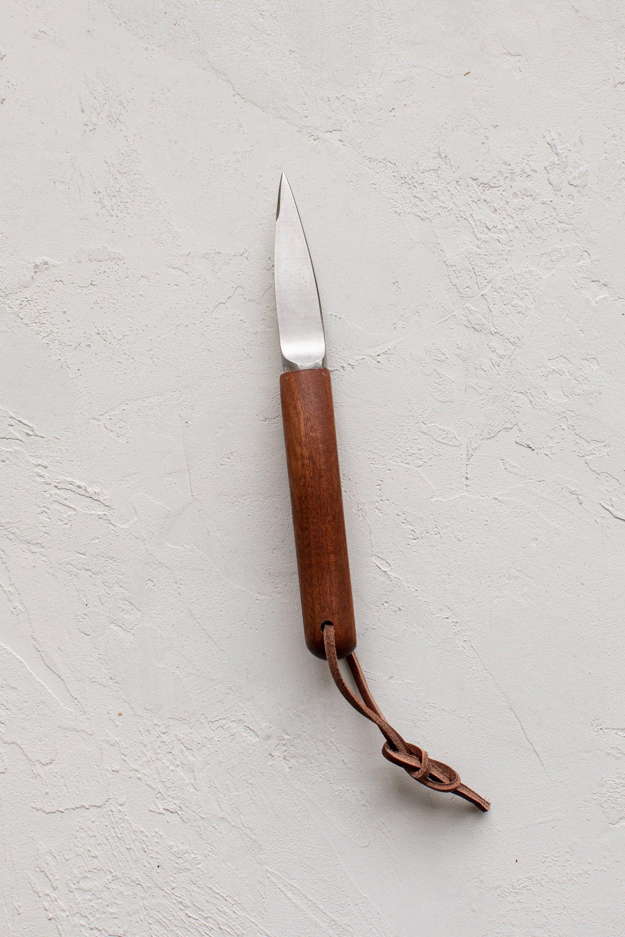 This French Style Forged Oyster Knife features a Sapelli Wood Handle and comes sealed in a leather holder.