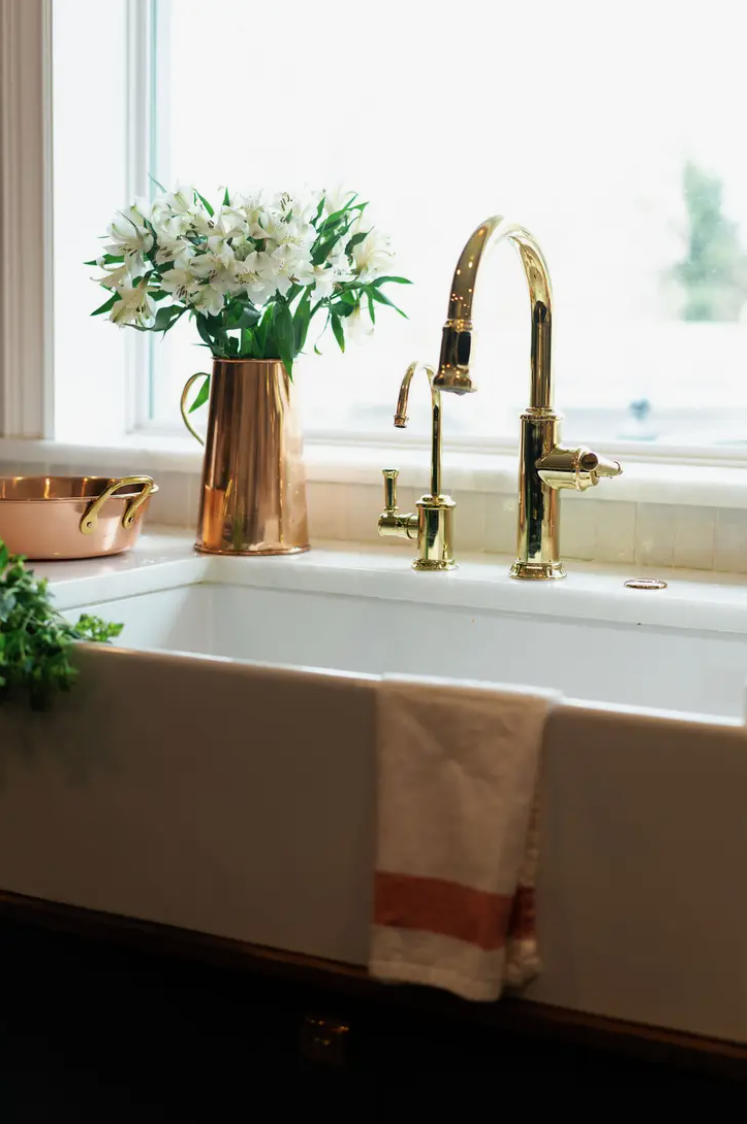 A copper water pitcher that doubles as flower vase. If it doesn't belong in a cottage kitchen, it doesn't belong in your kitchen. With that as Galley and Fen’s model, they designed this water jug of 100% copper, with a brass handle. Whether keeping your favorite beverage chilled, or acting as a vase for fresh flowers, this charming copper jug should be an essential part of your kitchen.