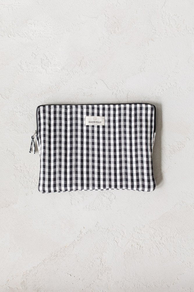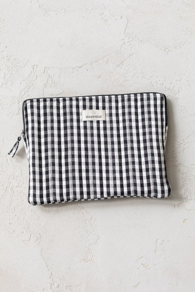 Elevate your workspace with our black gingham cotton laptop cover. This chic and timeless design combines vintage charm with modern functionality, providing a soft protective layer for your device. Lightweight and stylish, it effortlessly blends into any decor while keeping your laptop safe from scratches and dust.