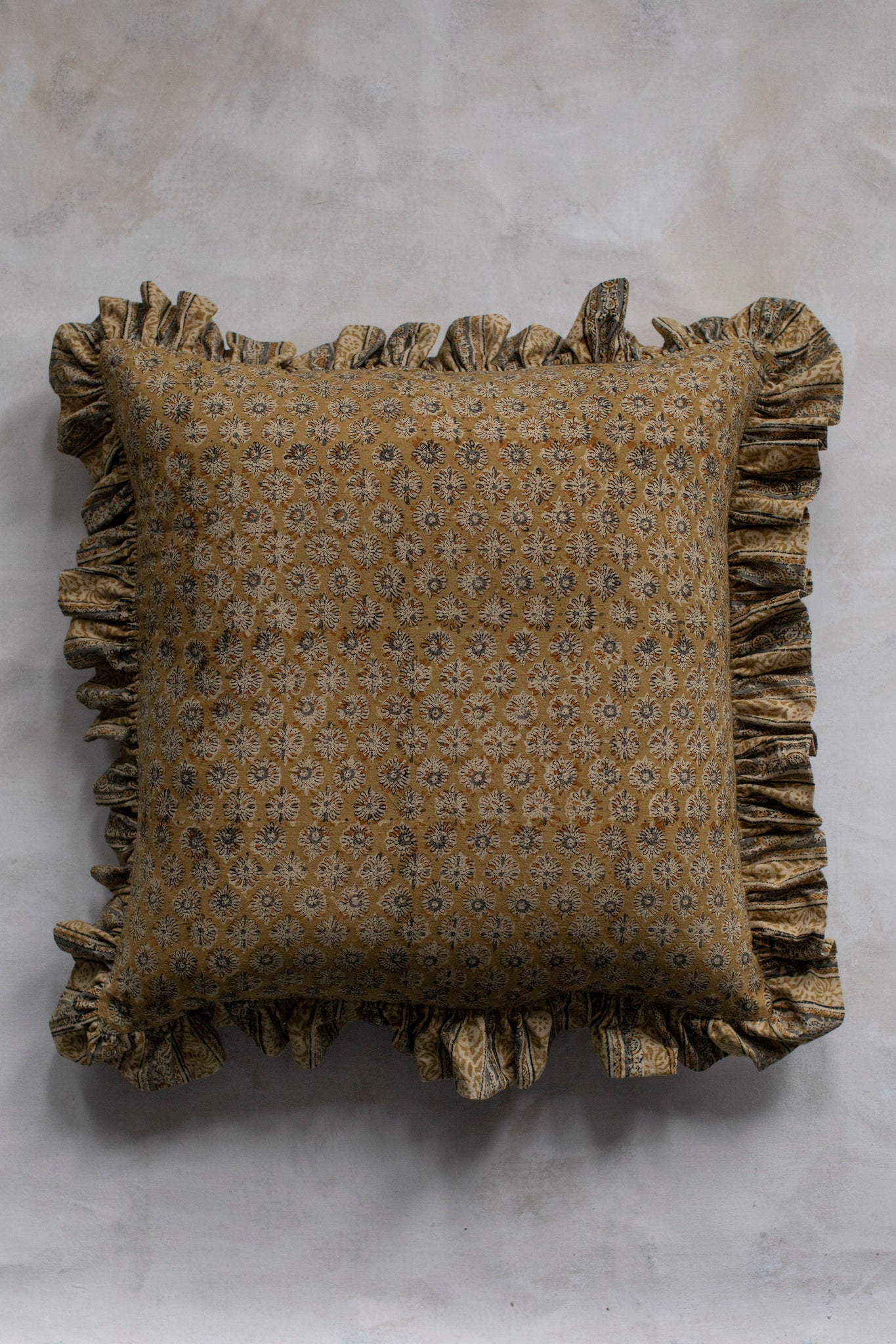 Transform your living space with Filling Spaces Titli Rose Pillow Cover. Each side is hand block printed on linen, featuring intricate designs that vary from each other. One side features pistachio colors with a bold pattern, while the reverse showcases subtle colors with a complementary design allowing you to switch up your decor. The hidden zipper closure ensures a polished look while allowing for easy removal and cleaning. Embrace the beauty of handmade decor with this unique, double-sided pillow cover that brings warmth and character to your home.