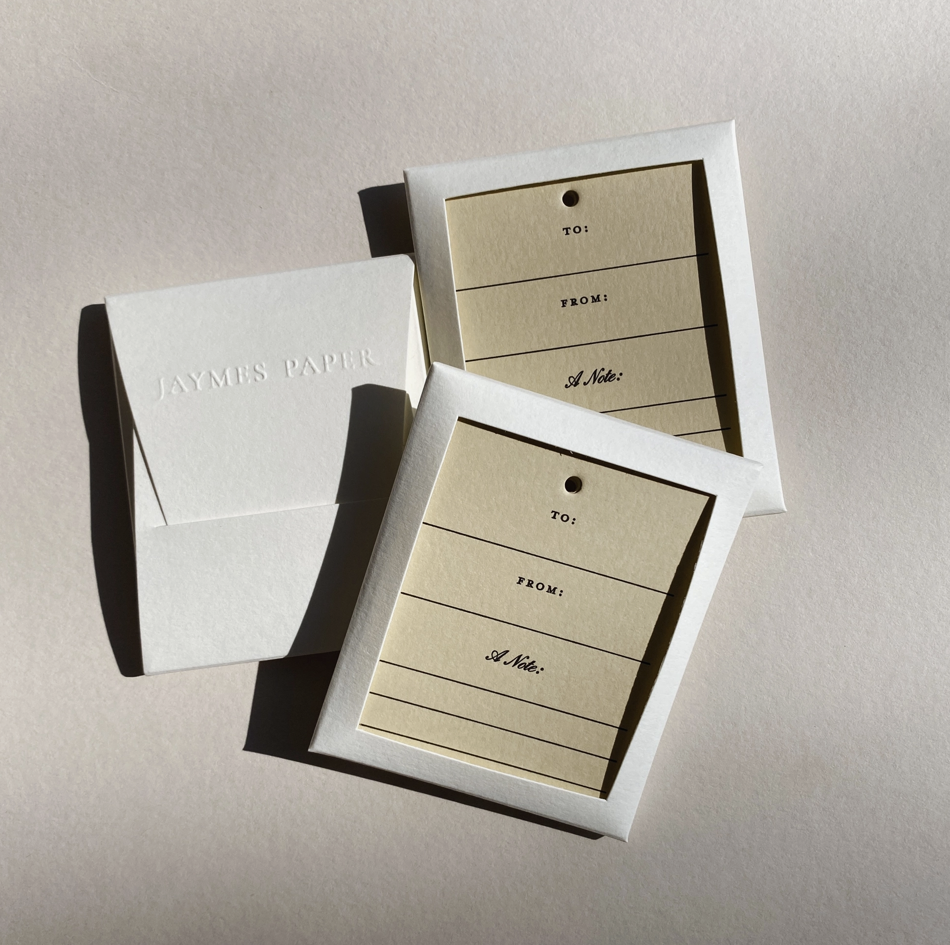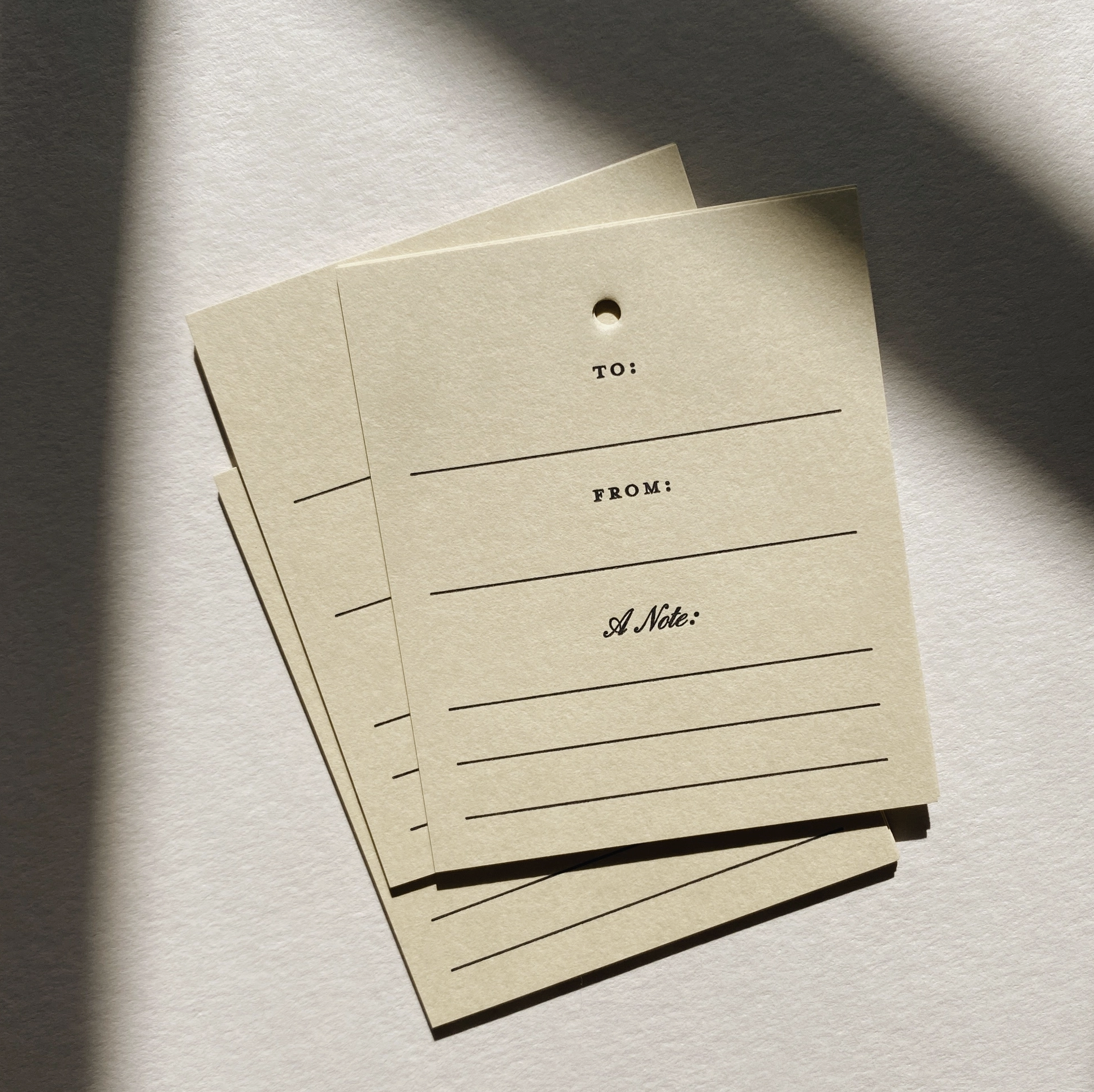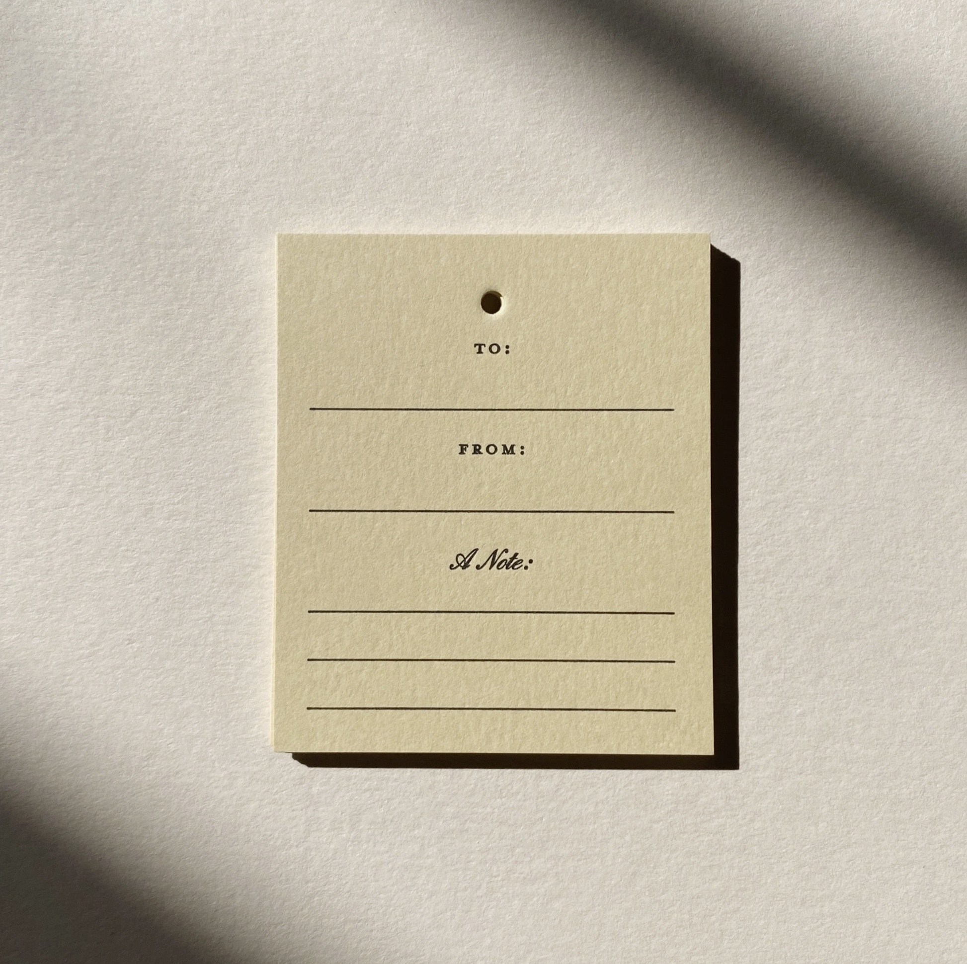 A present is not complete without a thoughtfully made gift tag. Modern and timeless, these gift tags compliment any gift wrapping or ribbons. Each set includes 10 letter pressed gift tags on natural stock.