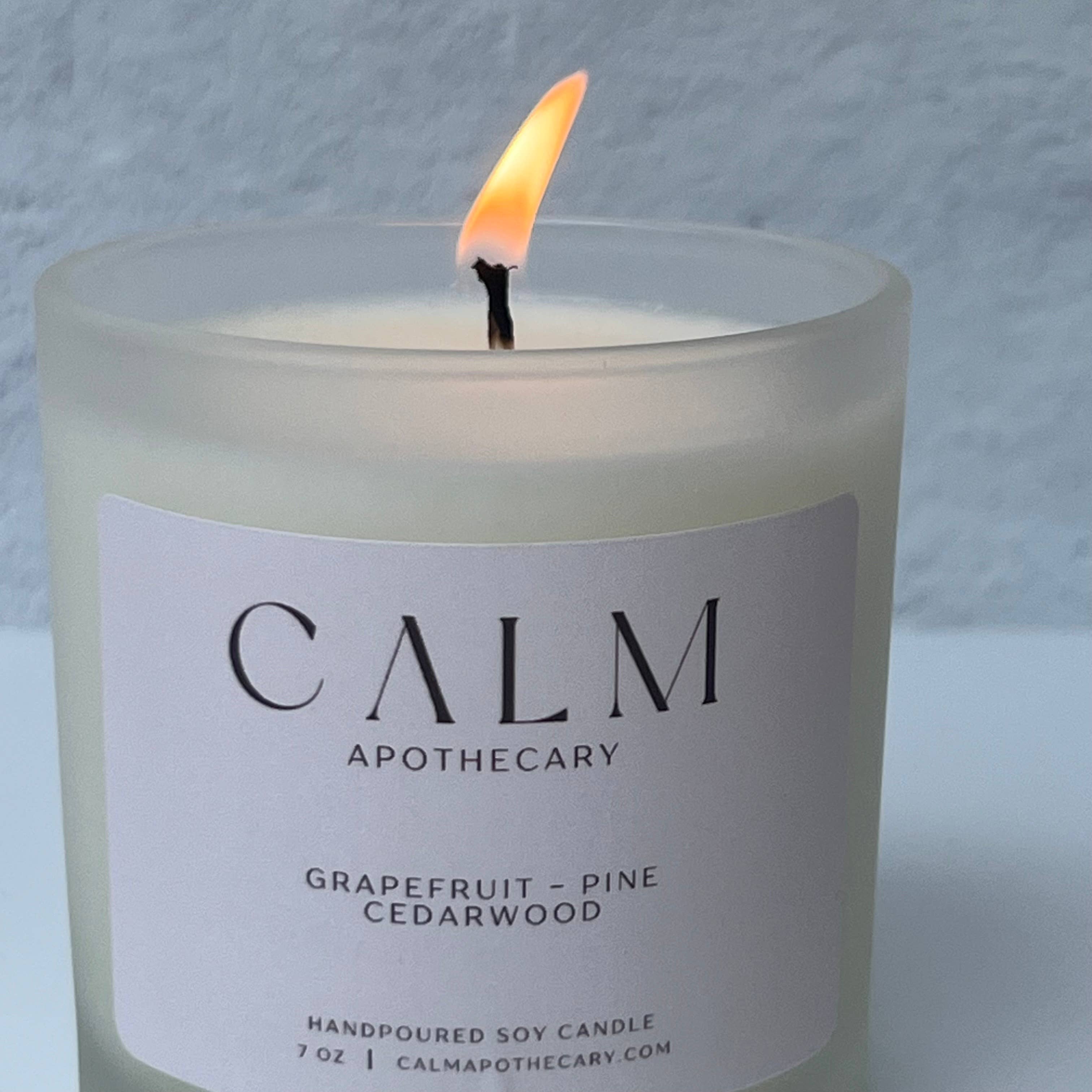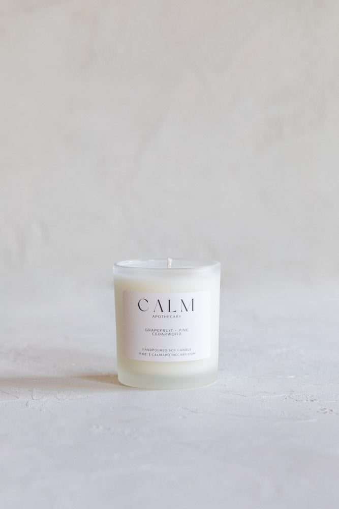 Handpoured soy wax candle made with steam distilled and therapeutic grade essential oils. A blend of grapefruit, pine and cedarwood essential oils.