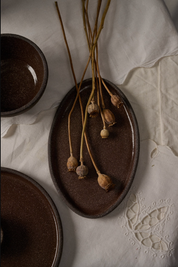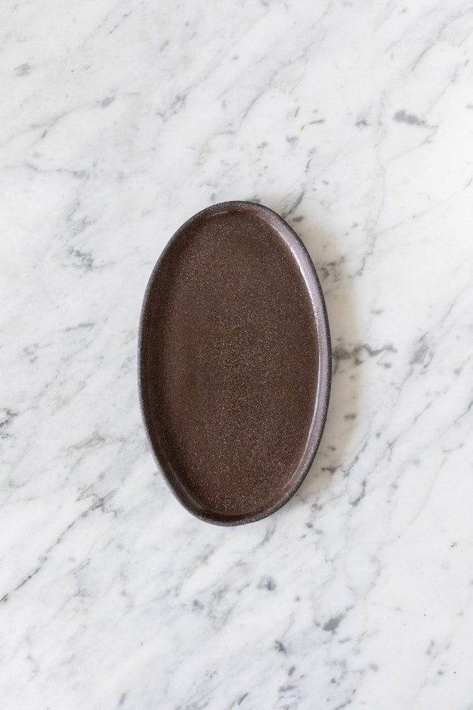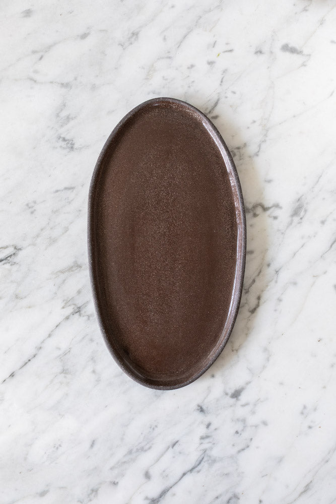 Handmade Stoneware Oval Serving Platter in Pumpernickel