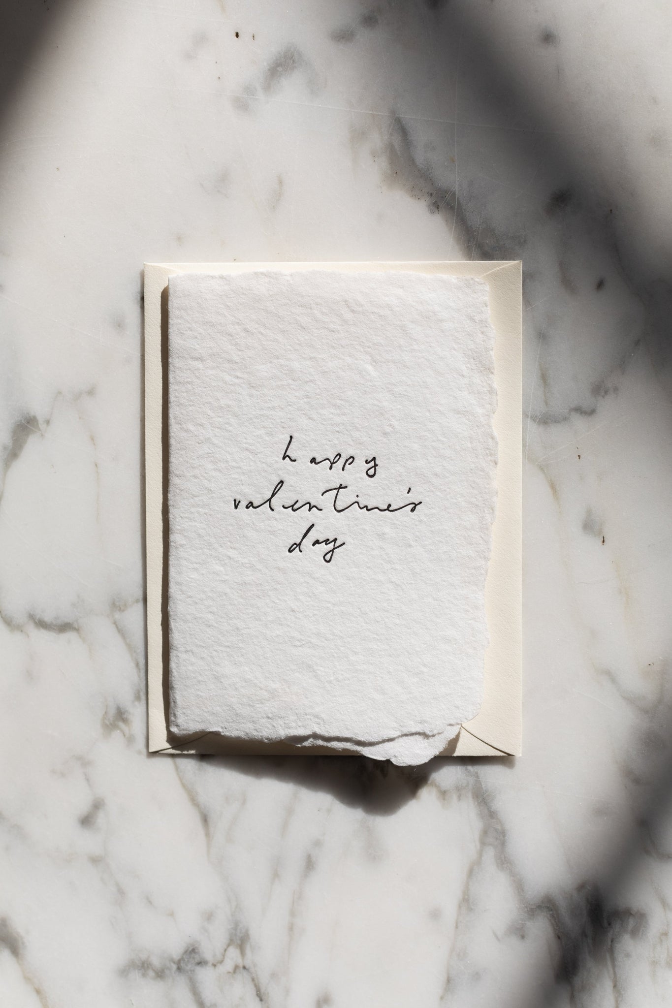 • handwritten "happy valentine's day" letterpressed in black ink on soft white handmade paper