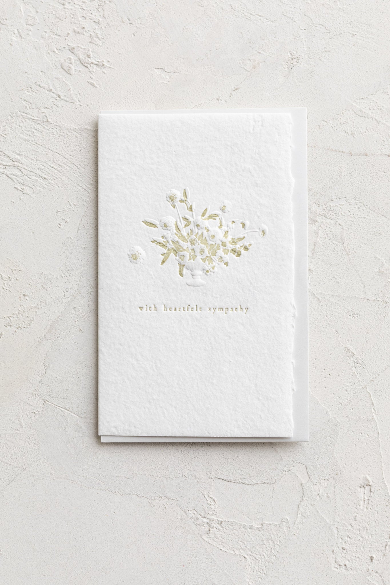 Our paper sculpture cards feature 3D embossed bouquets, letterpress printed on our soft white cotton paper with delicate color accents.