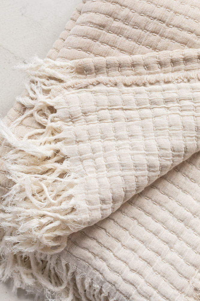 Experience the cozy elegance of this soft cotton Kantha Throw, featuring delicate fringed ends and a distinctive two-toned design with contrasting colors on each side. Its thoughtful artistry brings warmth and subtle style to any room, making it a perfect companion for quiet moments or adding a gentle touch to your decor.