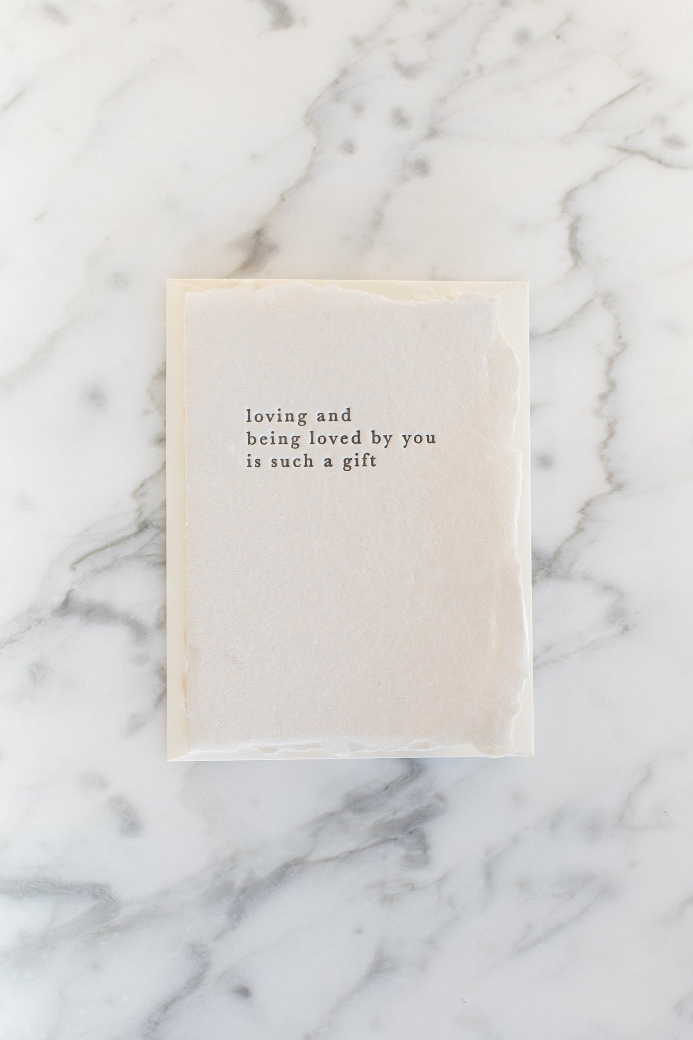 • Card reads “loving and being loved by you is such a gift”