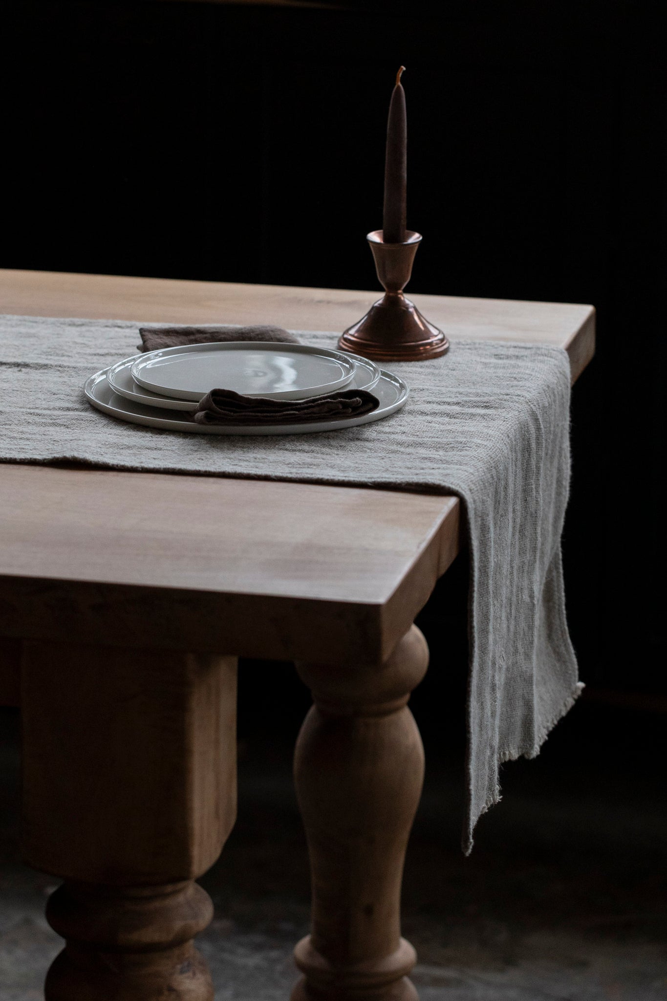 Transform your dining experience with this versatile linen chambray table runner. The natural weave of quality linen creates a soft, inviting texture that works beautifully in both casual and formal settings. Choose from our thoughtfully curated color palette to match your personal style and home aesthetic. Durable yet refined, this runner brings quiet sophistication to your table while remaining easy to care for and enjoy for years to come.