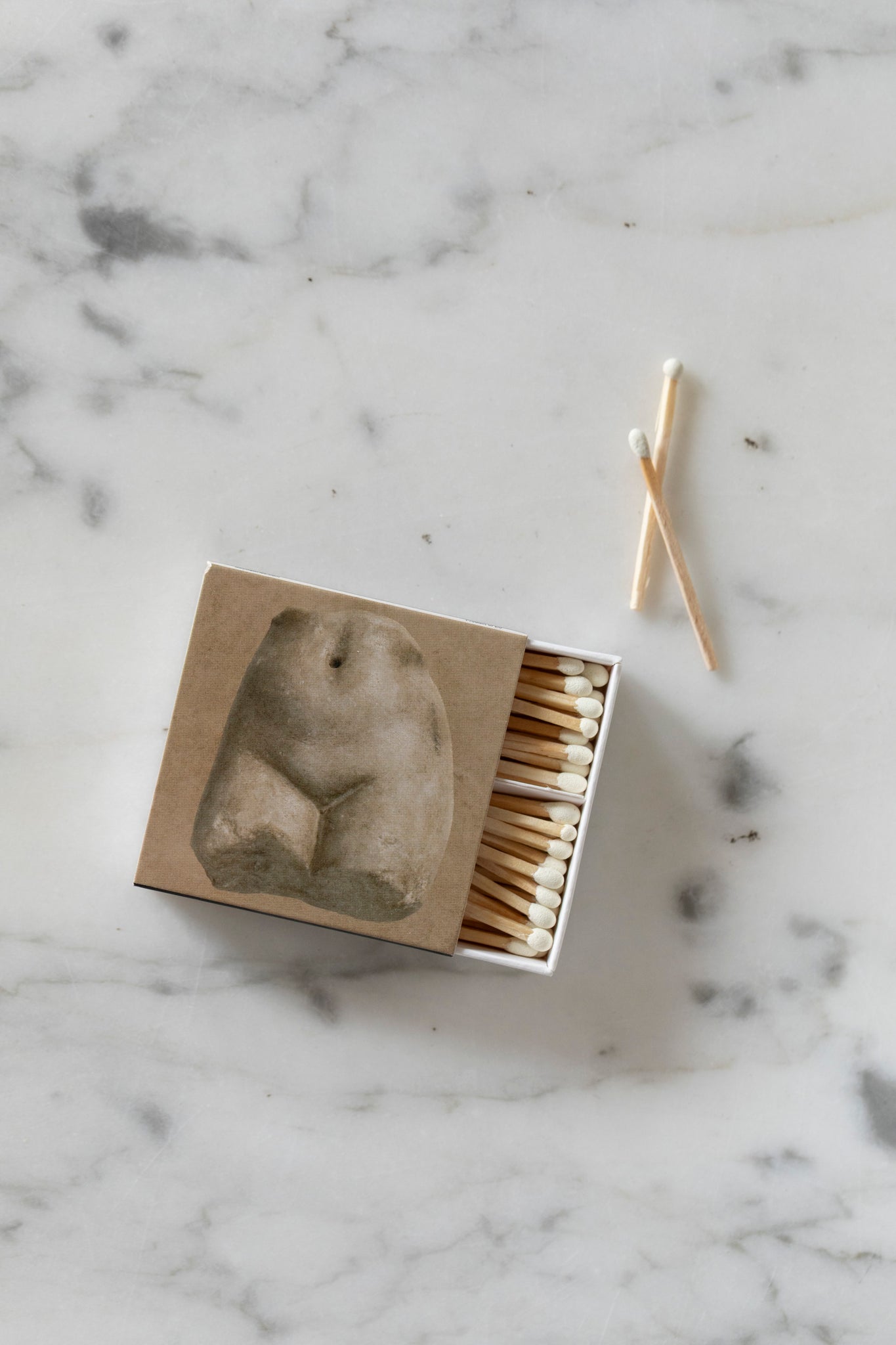 The SCULPTURE matchbox comes in a compact box adorned with beautiful double-sided femme sculpture artwork, adding a warm, artistic touch to your candlelight experience. Ideal for gifting, they perfectly complement candles, creating a cozy and meaningful ambiance for any occasion.