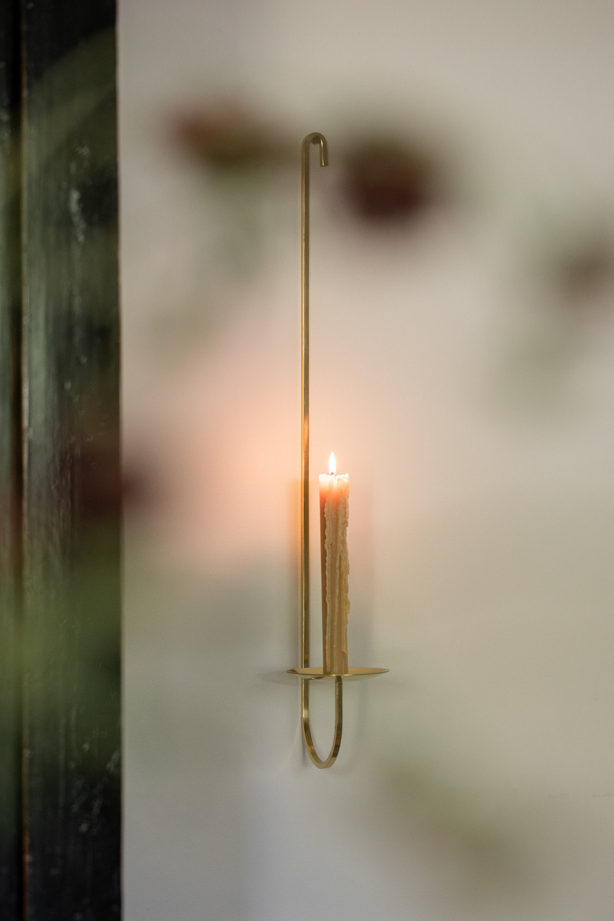 The Fredericks & Mae Two Arm Candle Holder in brass adds excitement and romance to your wall without having to source a new piece or art. Complete with a brass nail for hanging, this piece brings a touch of medieval chic, mid-century monastery, or Scandinavian style to your home.