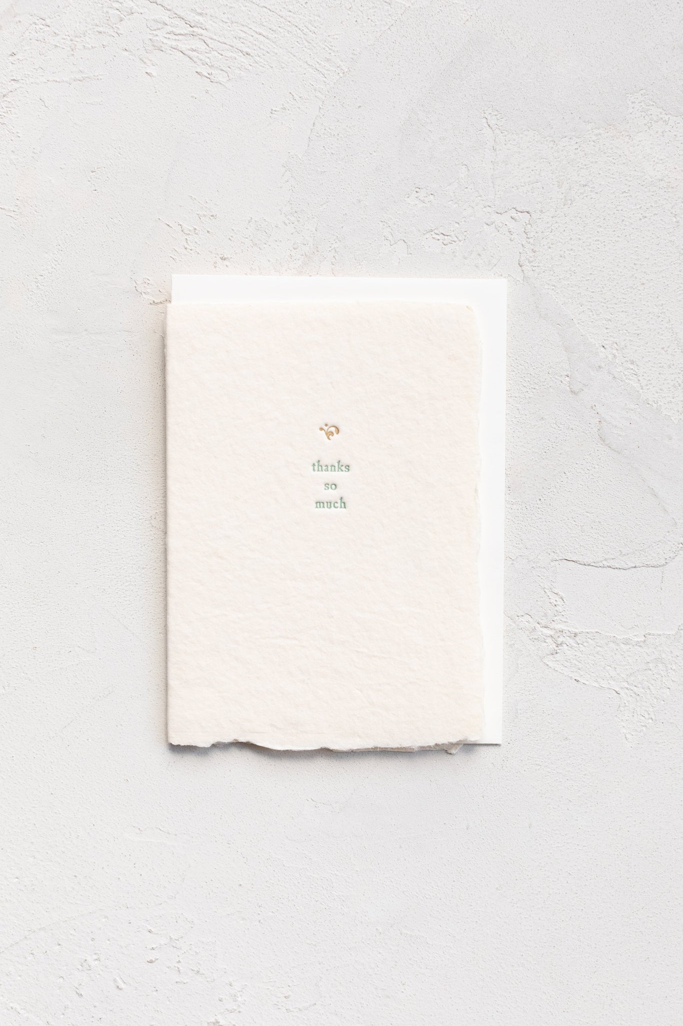 Some of our most-loved handmade paper cards, these small salutations are soft and poignant. with letterpress printed golden ornament and blue little words, they are as enjoyable to write in as they are to receive.