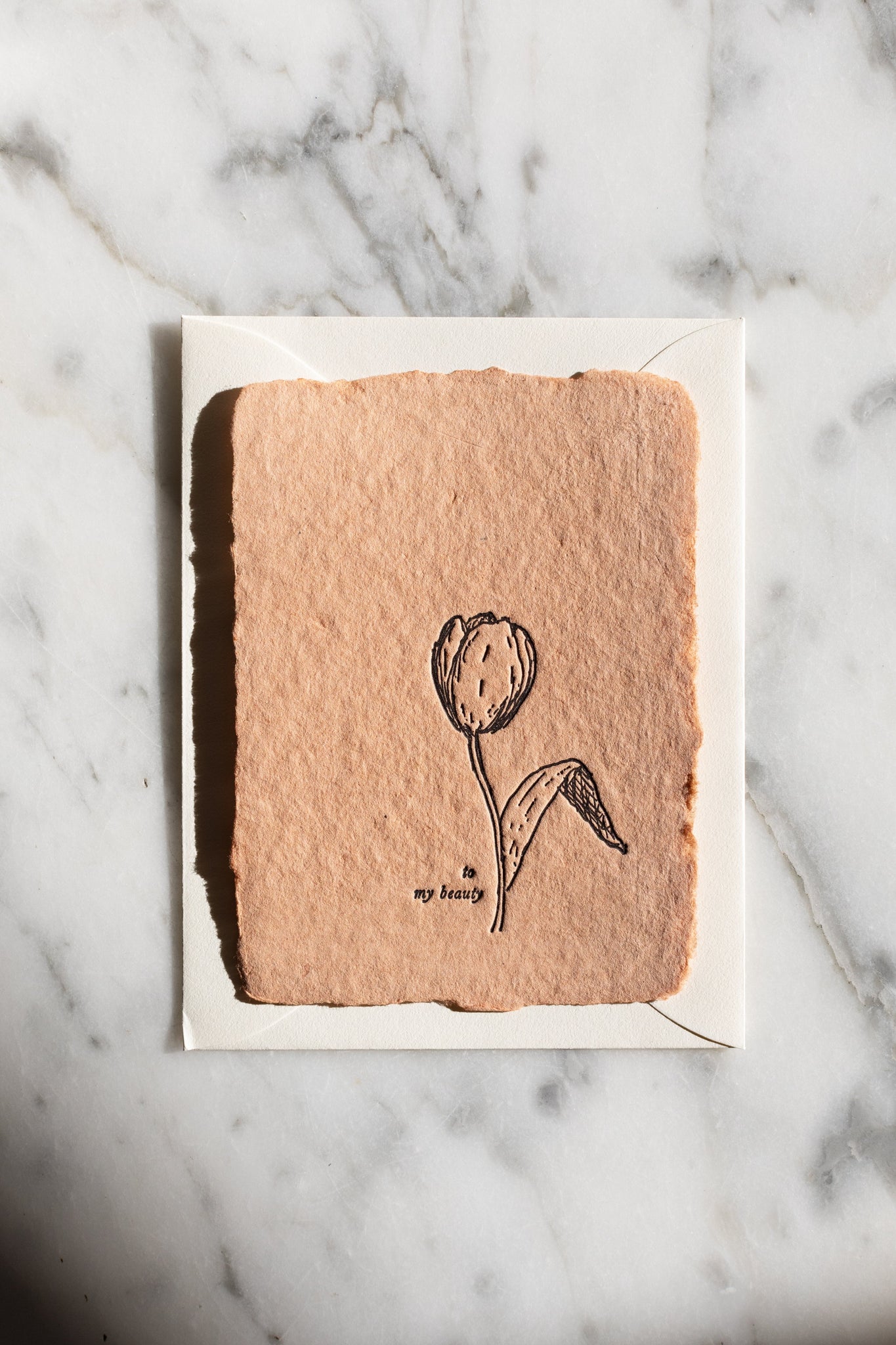 to my beauty notecard - Sketch illustration of a tulip with the words “to my beauty"