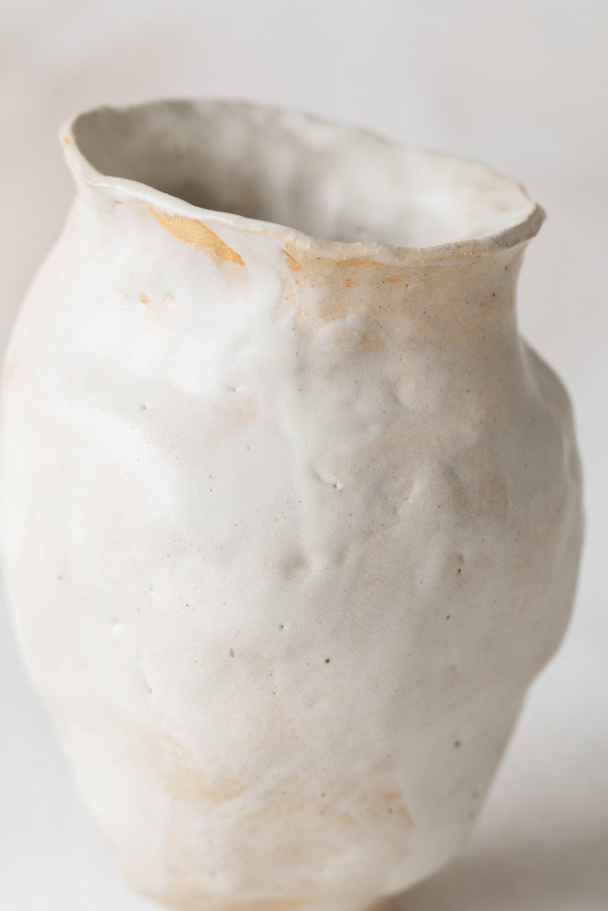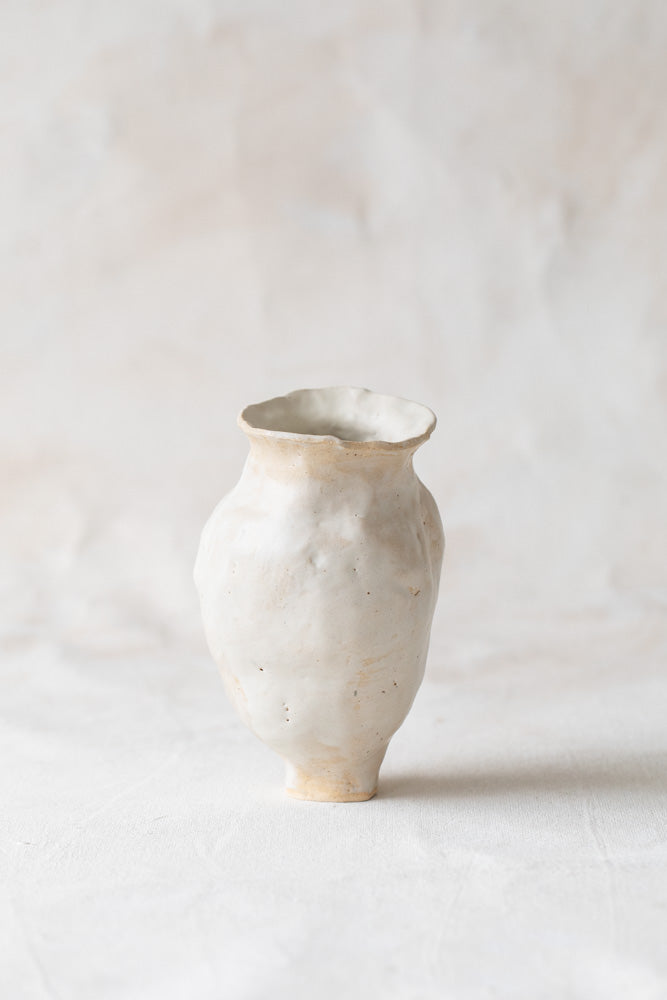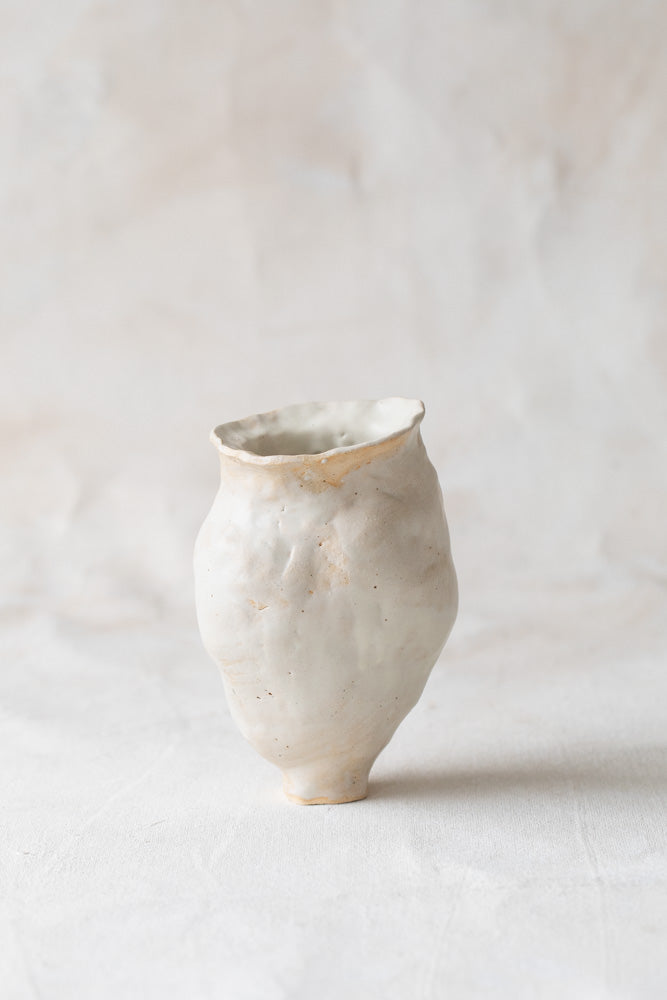 This vessel by NIK NIK embraces the beauty of organic forms, showcasing visible fingerprints that highlight the intimate connection between hand and clay. This vase invites you to cherish the imperfect and the personal in everyday objects.