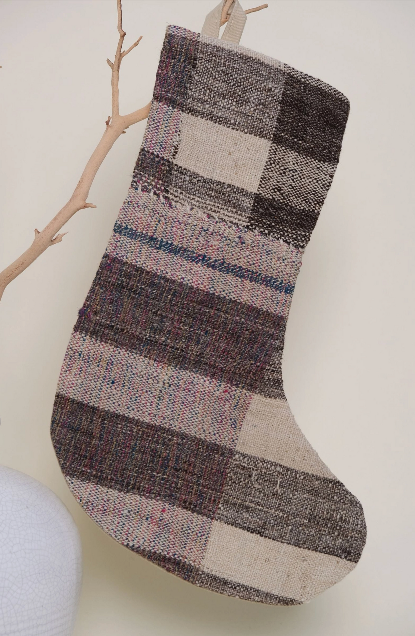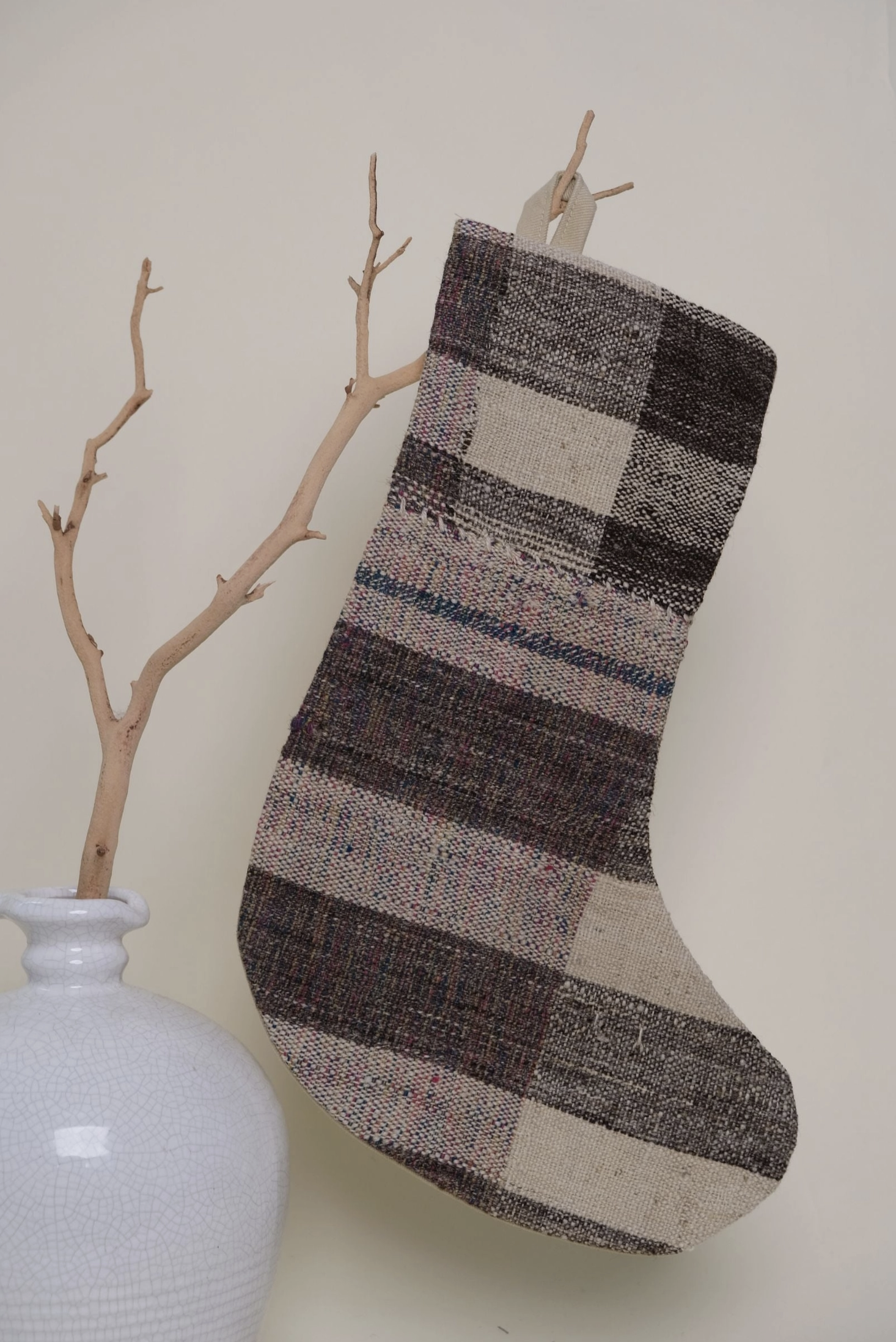 Made from vintage Turkish rug, decorate your home this holiday season with our one of a kind vintage stockings. Subtle differences in tone is normal for the fact that they are made from vintage rugs.